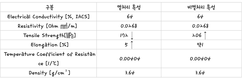 | 구분 | 열처리 특성 | 비열처리 특성 |