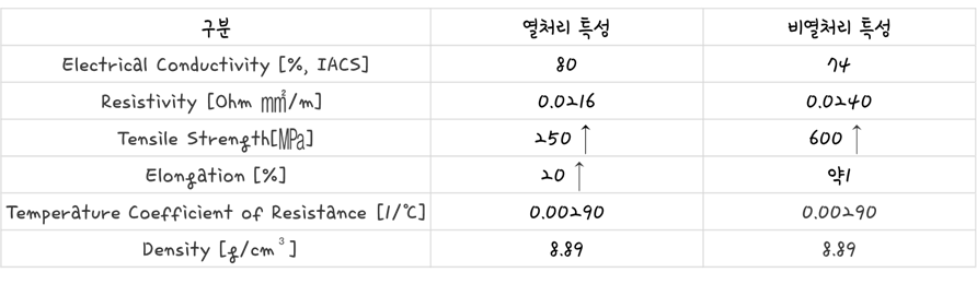 | 구분 | 열처리 특성 | 비열처리 특성 |